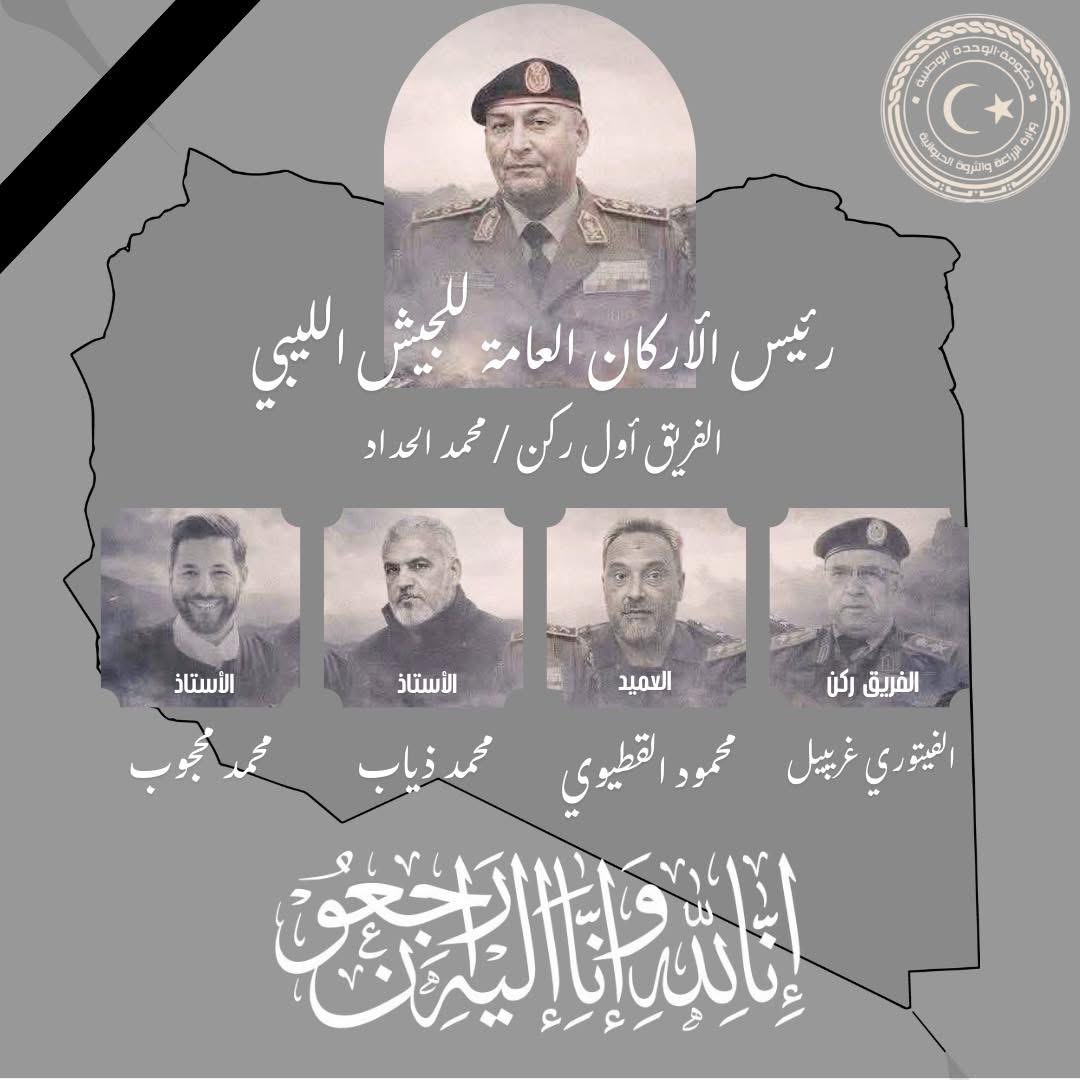 وكافة موظفي الوزارة، بأحرّ التعازي وصادق المواساة إلى الشعب الليبي، في وفاة المغفور لهم بإذن الله تعالى:
