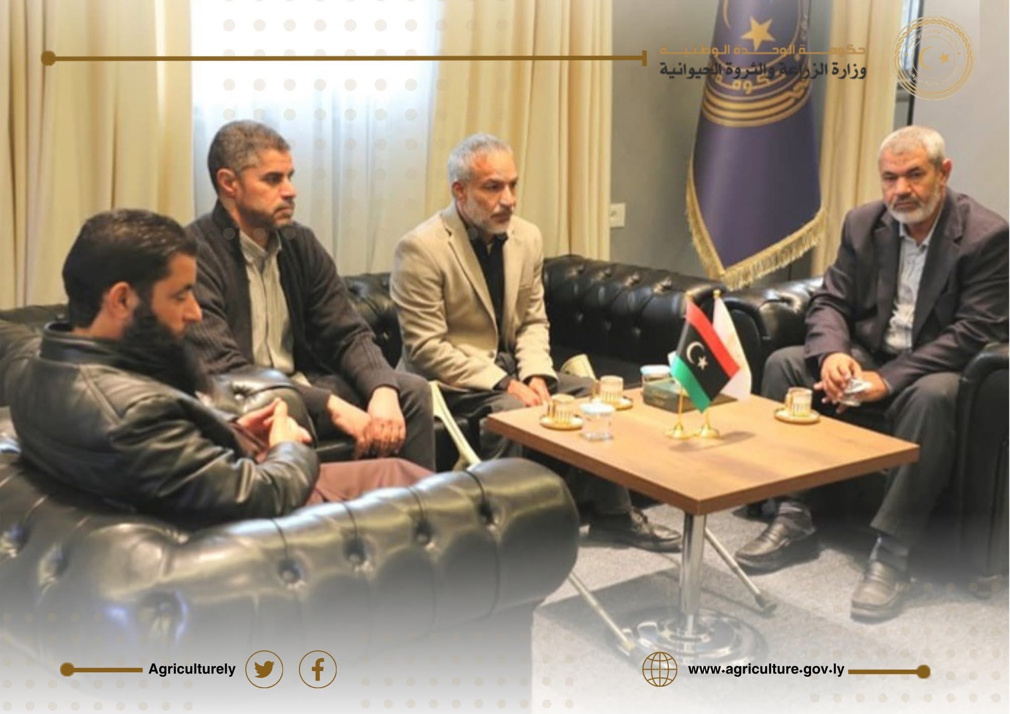 وقد رحّب السيد معالي الوزير بالسادة الحضور، حيث تم خلال اللقاء مناقشة جملة من الصعوبات والتحديات التي يواجهها قطاع الزراعة ببلدية زلطن، والمتمثلة في نقص الإمكانيات والدعم المخصص للقطاع، وضرورة حماية الغابات، إضافة إلى معالجة آثار الجفاف والكوارث الطبيعية، ومنها انجراف التربة الناتج عن السيول، وما ترتب عليه من فقدان قطعان من الأغنام لبعض المربين.