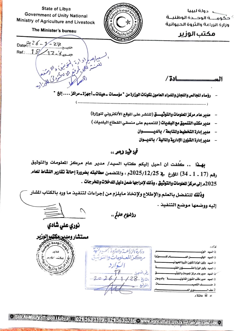 الرئيسية/الإعلانات/تعميم بضرورة إحالة تقارير النشاط العام لسنة 2025م إلى مركز المعلومات والتوثيق، وذلك لإدراجها ضمن دليل المدخلات والمخرجات. تعميم بضرورة إحالة تقارير النشاط العام لسنة 2025م إلى مركز المعلومات والتوثيق، وذلك لإدراجها ضمن دليل المدخلات والمخرجات. منذ 10 ساعات 9 أقل من دقيقة اظهر المزيد
