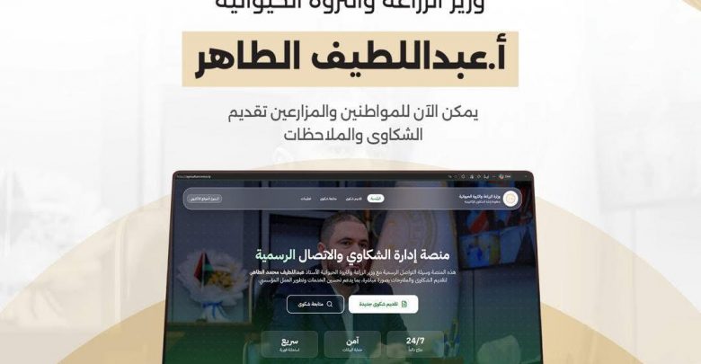 وزير الزراعة والثروة الحيوانية يعلن إطلاق منصة الشكاوى والتواصل الإلكترونية
