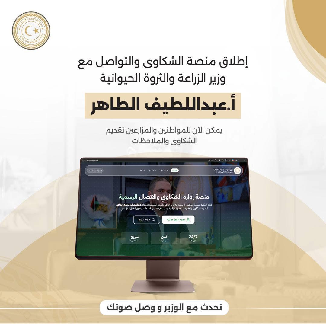 أعلن معالي وزير الزراعة والثروة الحيوانية أ. عبداللطيف الطاهر عن إطلاق منصة الشكاوى والتواصل الإلكترونية، وذلك في إطار تعزيز التواصل المباشر مع المواطنين والمزارعين، وتمكينهم من تقديم الشكاوى والملاحظات ومتابعتها بكل سهولة.